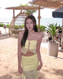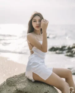 อีกสักคอนเทนต์ ที่น้องแอบโชว์ ของภายใต้ หน้าตาน่ารัก แต่แอบแซ่บ ไม่เบานะ ชุดนี้ เหมือนกำลัง จะลงเล่นน้ำสระ แห่งหนึ่ง ชุดไม่ธรรมดาเลย มองไกล ก็เป็นชุดเดรส สีขาว ลายลูกไม้ กับกางเกง ขาสั้น ที่ดูเหมือน ชุดน่ารักเล่นน้ำ แต่ว่า ตอนถ่าย ใกล้เรา จะได้ เห็นว่า ไม่ใช่นะ เสื้อตัวบาง แอบโชว์ ว่าข้างใน ใส่อะไรอยู่ แล้วกางเกงขาสั้น มันก็ผ้าบางมาก น่าจะโดนน้ำแล้วแนบเนื้อจนเห็นสัดส่วนเลย บอกเลยว่าลุคน่ารักมาแอบโชว์แบบนี้เราอย่างชอบ