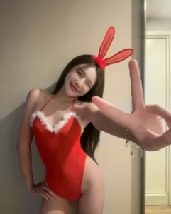 แต่อีกมุมหนึ่ง พอหมดจากช่วงเรียน น้องก็พร้อมจะเป็นตัวเองในคาแรกเตอร์ทั้งเซ็กซี่ สวย น่ารักแบบไม่เหมือนใคร อย่างลุคนี้ที่ไปถ่ายชุดเซ็กซี่ของวันตรุษจีนที่ผ่านมา ด้วยชุดเดรสสีแดงซีทรูที่แอบเห็นว่าข้างในเซ็กซี่อยู่นะ เสียดายได้เห็นแค่แว่บเดียว น้องเอาผ้าห่มขึ้นมาผิดอกไว้ จะบอกว่าถ้าเอาผ้าลงนี้น่าจะเป็นคลิปเซ็กซี่สุดคลิปหนึ่งของน้องได้เหมือนกัน ก่อนจะทิ้งท้ายด้วยภาพเซ็กซี่วางชุดชั้นในสีแดงทั้งบราและบิกินี่แบบทีแบ็คไว้บนเตียงนอนให้เราไปคิดต่อกันเอง (แอบร้องครางเสียดายเลย น้องไม่ใส่ให้เราดูอ่ะ อยากเห็นจริงว่ามันจะสวยเซ็กซี่แค่ไหน)